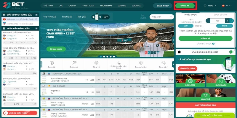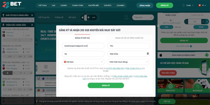 Hướng dẫn đăng ký 22Bet với các bước đơn giản