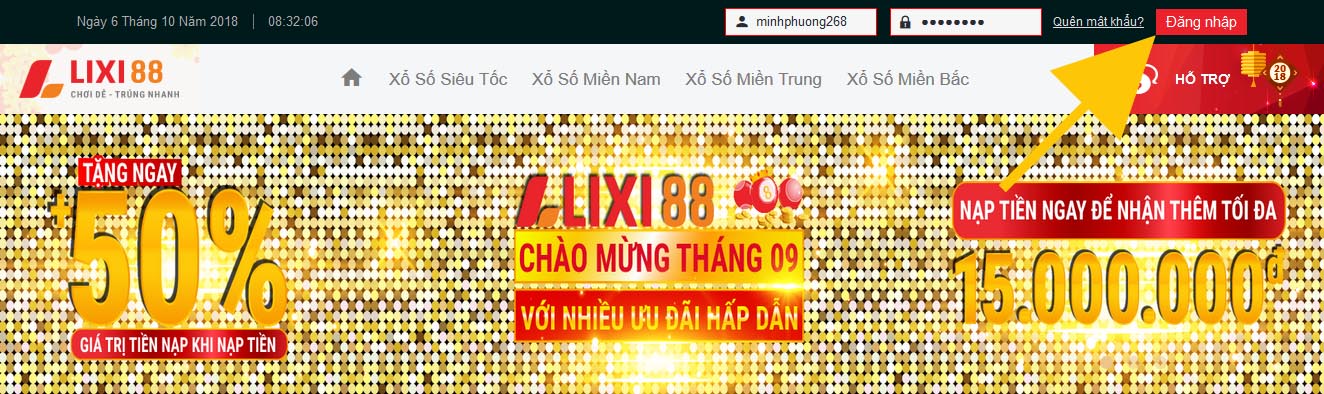 Hướng dẫn đăng nhập vào Lixi88