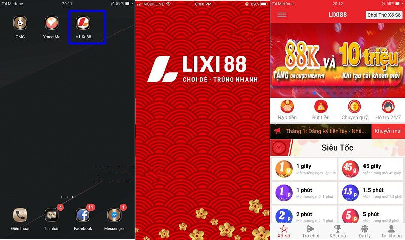 Ứng dụng Lixi88 trên Android