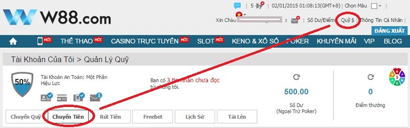 Sau khi các bạn đã gửi tiền xong, để W88 biết các bạn đã nộp tiền thì bạn cần phải đăng nhập w88 và tiến hành khai báo thông tin chuyển tiền.