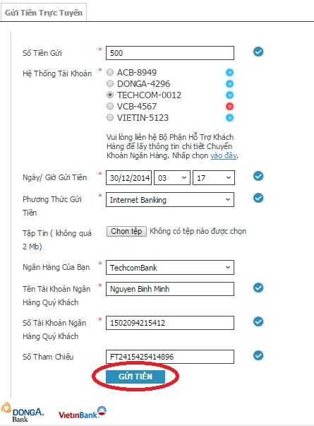 Ví như các bạn đã nộp tiền tại quầy hay qua máy ATM thì tốt nhất hãy giữ lại biên lại sau đó chuyển tiền để có thể việc khai báo thông tin chuyển tiền được thực hiện một cách chính xác tuyệt đối nhất. Chỉ cần thông qua các bước tiến hành như sau: