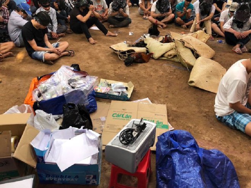 Trong số 115 người bị bắt quả tang, lực lượng công an đã bắt giữ được 72 đối tượng về hành vi tổ chức đánh bạc và tham gia đánh bạc ăn tiền. Trong số này, có 5 đối tượng tổ chức đánh bạc, gồm: đối tượng Võ Vinh Hiên (30 tuổi, ngụ tại Đồng Nai), Nguyễn Văn Bình (50 tuổi, ngụ tại TP.Mỹ Tho), Nguyễn Quốc Bảo (28 tuổi, ngụ tại Tiền Giang), Trần Thanh Quan (46 tuổi, ngụ tại Tiền Giang), Phạm Kim Tân (32 tuổi, ngụ tại Tiền Giang).