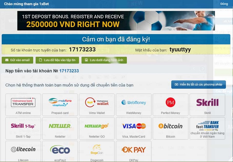 Hướng dẫn nạp tiền tại nhà cái 1xbet