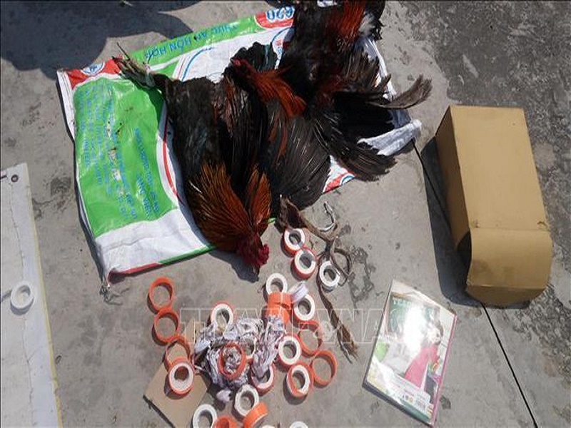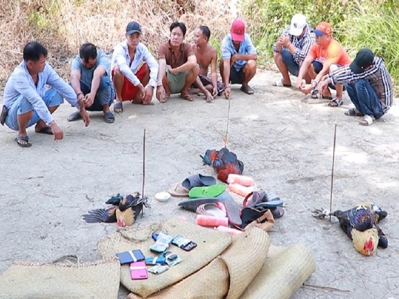 Bắt giữ 12 đối tượng tham gia đá gà ăn tiền giữa vườn cây me